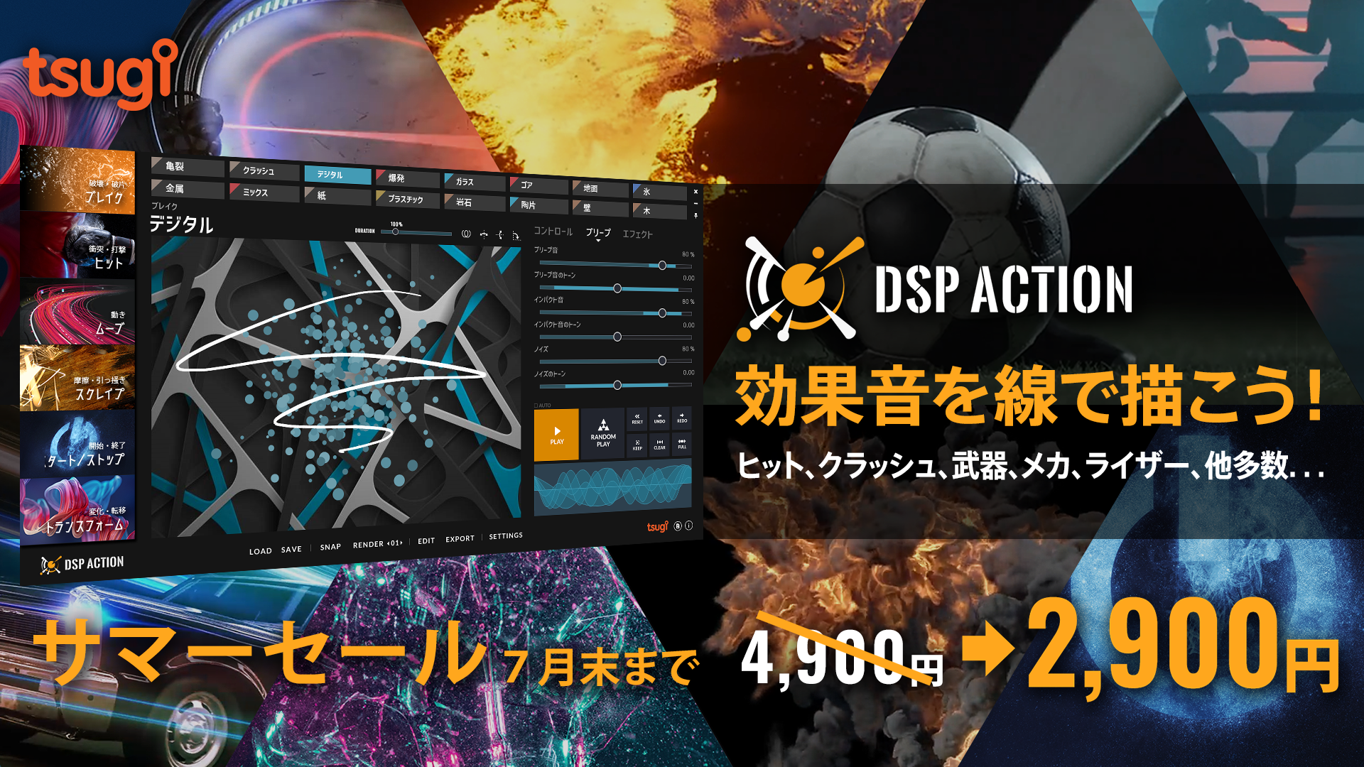 Tsugiは今年、創業以来初のサマーセールを実施いたします! 効果音作成ツールが全品、7月末まで40%割引でお求めいただけます。