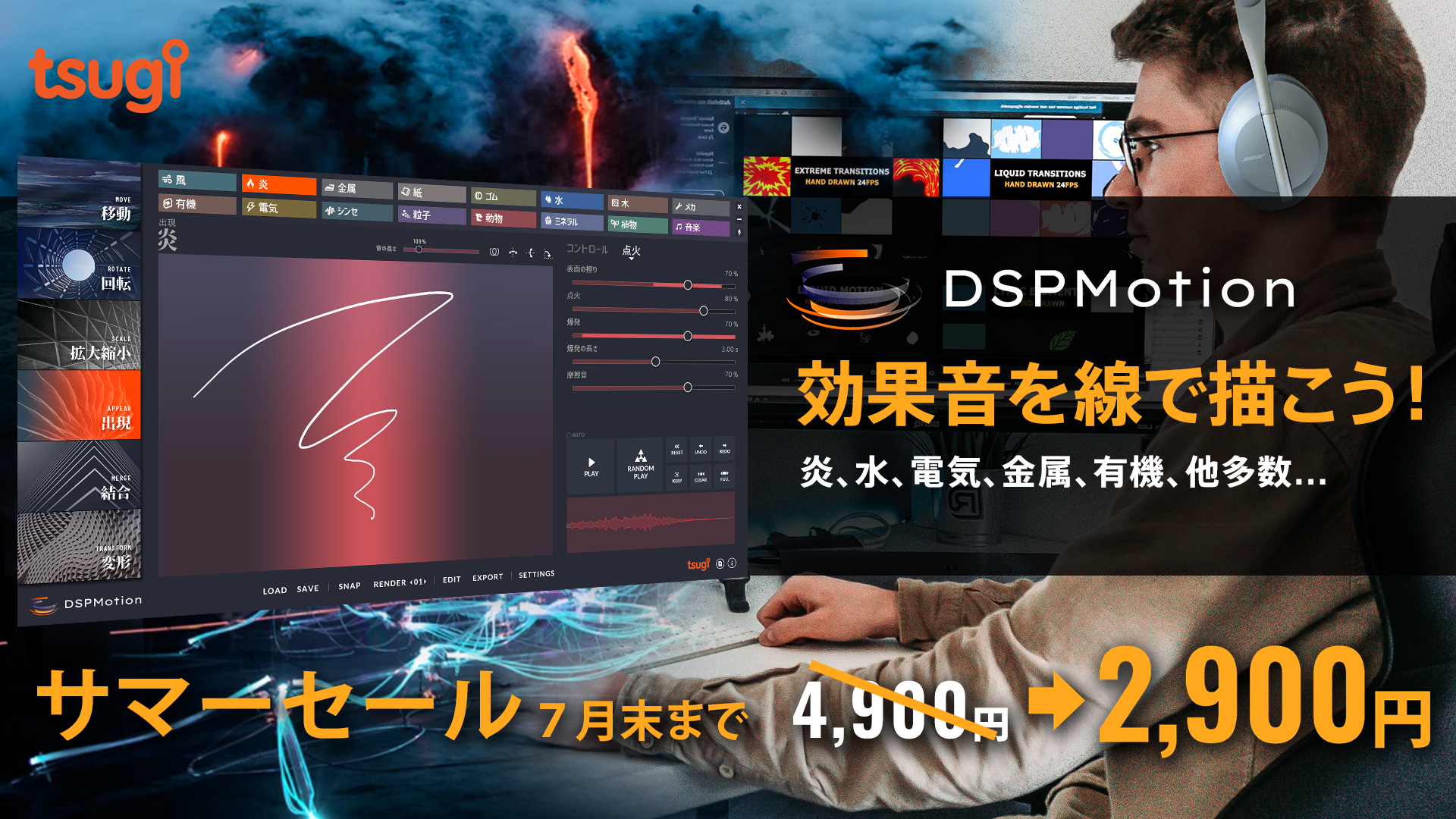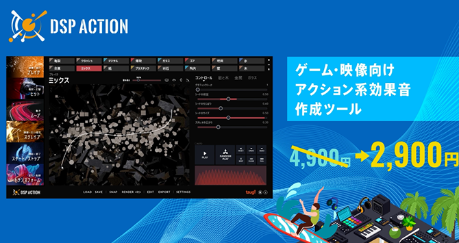 マウスやペンタブで線を描いて効果音を作り出せる、DSP Action&DSP Motionが、なんと4,900円 → 2,900円! 素早く簡単に、かつ表現力豊かにサウンドデザインできる方法はこれ以上にないでしょう。